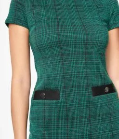 Dress Code Retro Style Black & Green Plaid Shift Dress