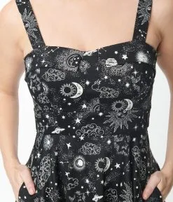 Eva Rose (Ixia, Elliko Inc.) Black & White Lunar Print Fit & Flare Dress