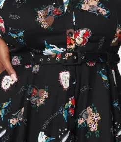 Collectif Plus Size Black Cats Forever Caterina Swing Dress