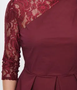 Chic Star Burgundy & Black Lace Frill Collared Swing Dress