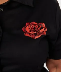 Hemet (Faire) Black & Red Rose Shirt Swing Dress