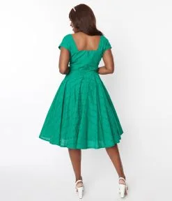SHEEN Clothing Ltd Green Eyelet Swing Dress