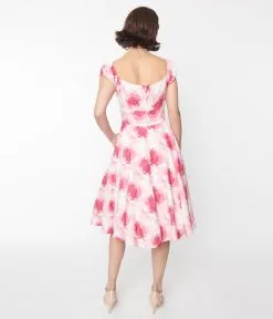 SHEEN Clothing Ltd Pink Roses Sophia Swing Dress
