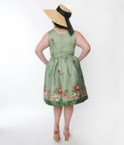 Silver Stop Inc. (Voodoo Vixen) Voodoo Vixen Plus Size Olive Green Woodland Satin Swing Dress