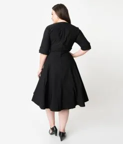 Unique Vintage Plus Size Black Delores Swing Dress With Sleeves