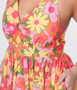 Smak Parlour Pink & Orange Floral Halter Maxi Dress