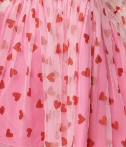 Smak Parlour Plus Size Pink & Red Glitter Hearts Love Interest Babydoll Dress