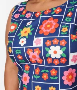 Smak Parlour Plus Size Navy & Floral Wallpaper Sleeveless Mini Dress