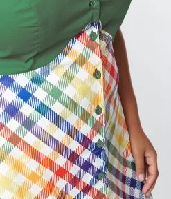 Smak Parlour Plus Size Green & Rainbow Gingham Mini Shirt Dress