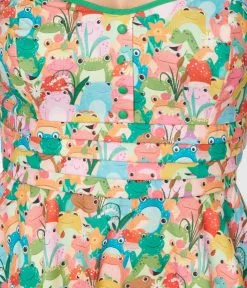 Unique Vintage Ribbit Rainbow Frog Print Swing Dress