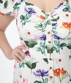 Unique Vintage Plus Size White & Multicolor Floral Midi Dress