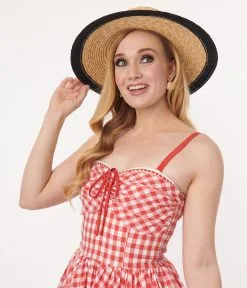 Jeanne Simmons Accessories Tan Straw Black Ladybug Bow Sun Hat