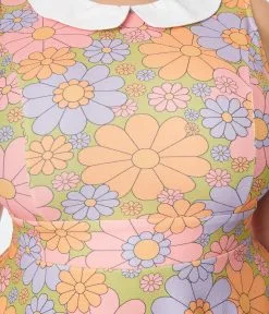 Smak Parlour Avocado Green & Multicolor Daisy Fit & Flare Dress