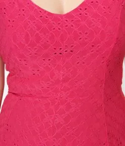 Curve Market Plus Size Fuchsia Eyelet Flare Dress