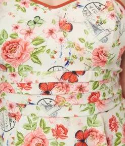 Unique Vintage Plus Size Butterfly Floral Follow Your Heart Flare Dress