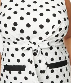 Smak Parlour White & Black Dots Tie Front Shift Dress