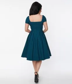 Unique Vintage Teal & Black Dot Midge Swing Dress