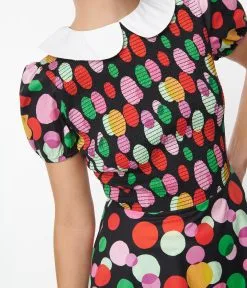 Smak Parlour Black & Rainbow Dot Smocked Fit & Flare Dress