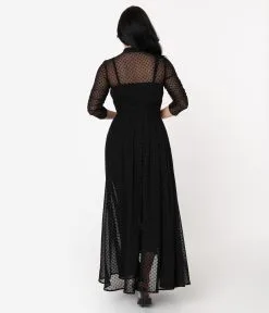 Unique Vintage Plus Size Black Swiss Dot Starlet Duster