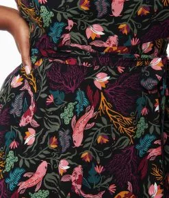 Collectif Plus Size Black Tropical Reef Katrina Swing Dress
