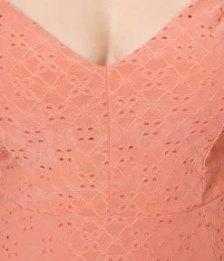 Curve Market Plus Size Coral Eyelet Flare Mini Dress