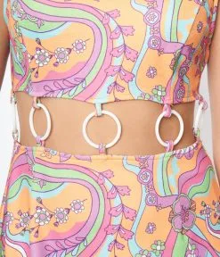 Smak Parlour Green & Pink Psychedelic Floral Halter Maxi Dress