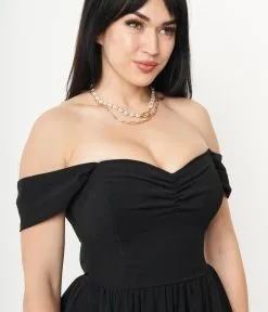 Unique Vintage 1950s Ivory Floral Off Shoulder Flare Dress