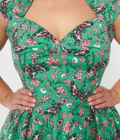 Pop Soda Hell Bunny Green Skeleton & Moths Floral Madilynn Midi Dress