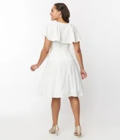 Unique Vintage Ivory Capelet Swing Dress