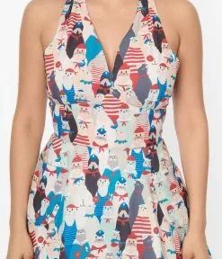Unique Vintage La Jolla Cove Print Halter Swing Dress