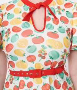 Unique Vintage Ivory & Red Tomato Print Flare Dress