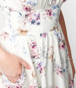 Unique Vintage Ivory Floral Off The Shoulder Ruffle Swing Dress