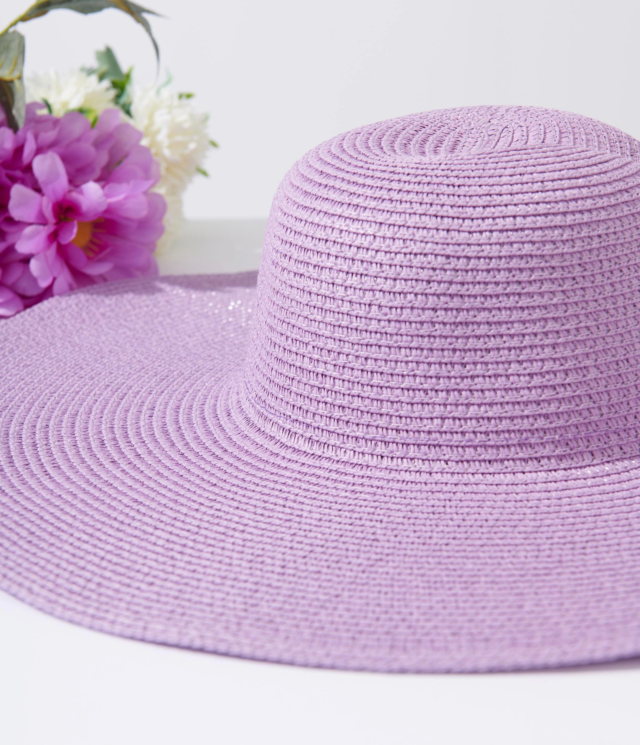 Lavender wide brim sun hat. Complete with adjustable ties inside the crown that ensures a perfect fit.