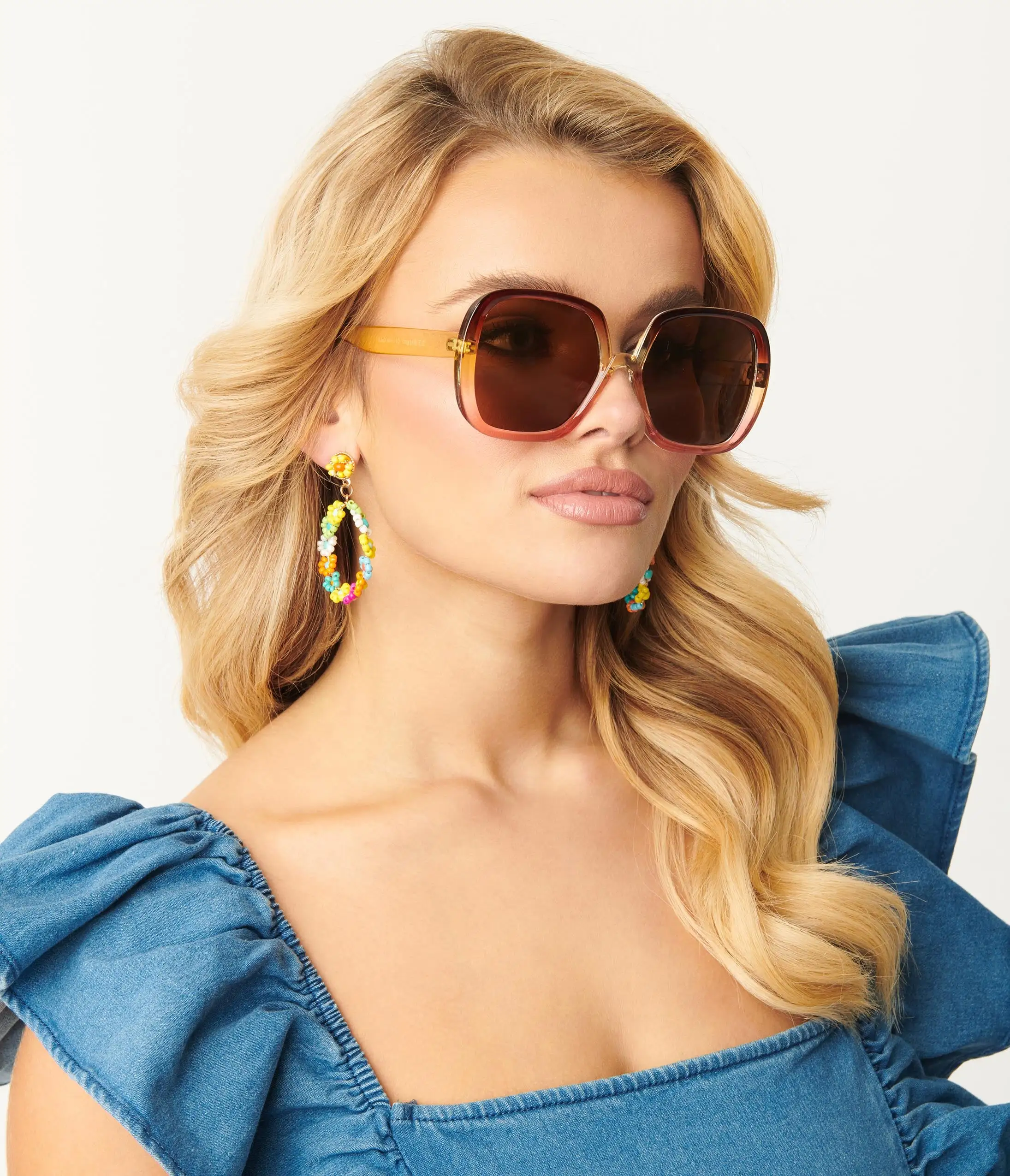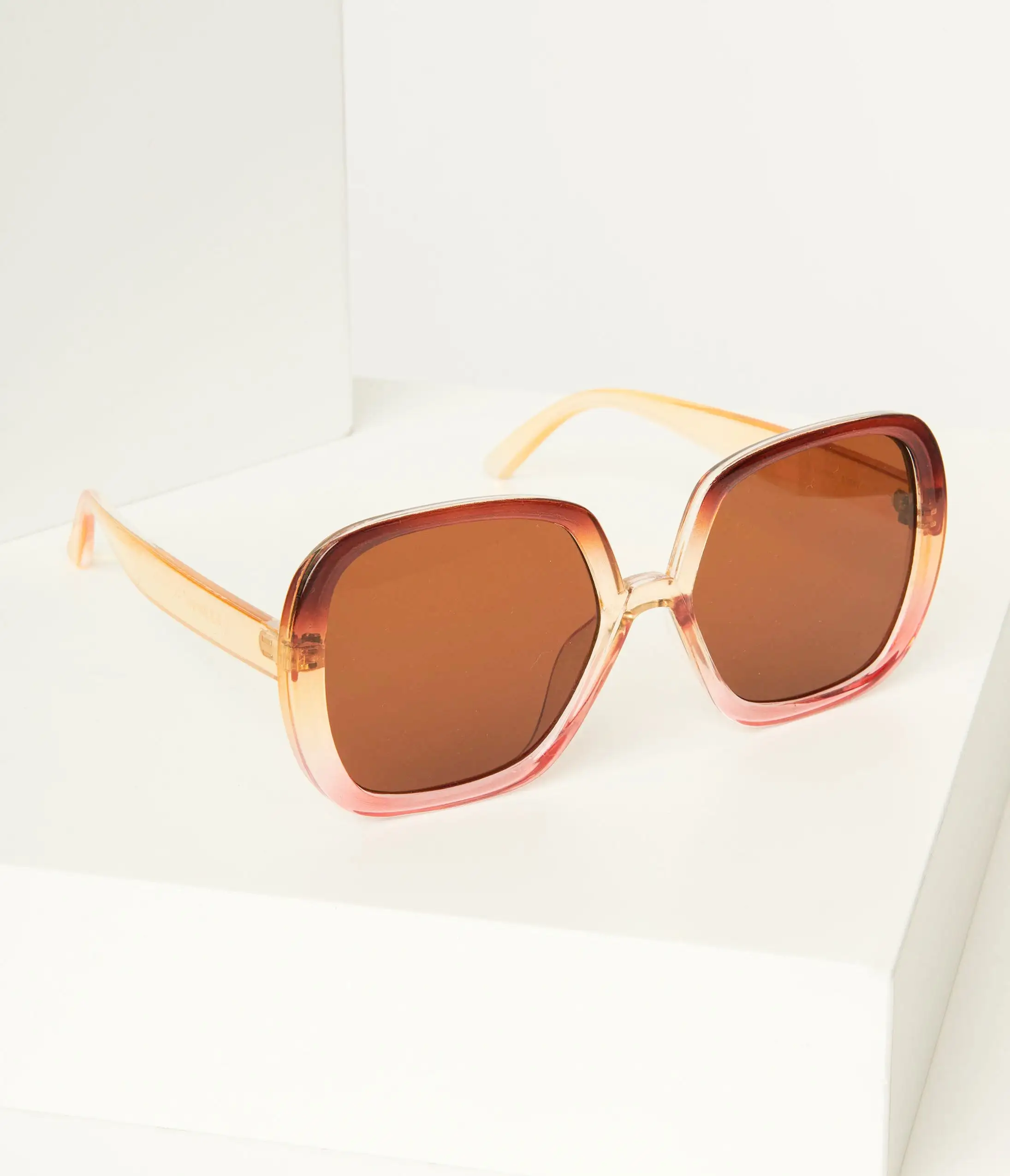 These retro style square sunglasses boast brown and pink ombre frames with brown tinted lenses, while a molded nose and sturdy arms perfect these sunnies.