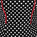 This gorgeous 1950s inspired wiggle dress is set in a black woven boasting red piping and white polka dots throughout. Outfitted with spaghetti straps, a sweetheart neckline and a peplum hem. Complete with a back zipper.