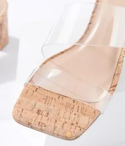 Have some fun in the sun in these darling slip-on sandals! Crafted in beige cork and accented with clear straps, this pair of modern kicks are to die for. The darling 3 inch kitten heel and cushion insole provide comfortable frolics!