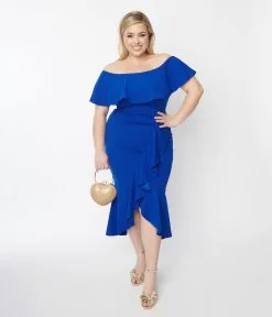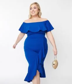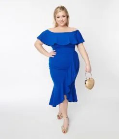 Be the first to review “Janette Fashion Plus Size Royal Blue Off The Shoulder Ruffle Midi Dress” Cancel reply