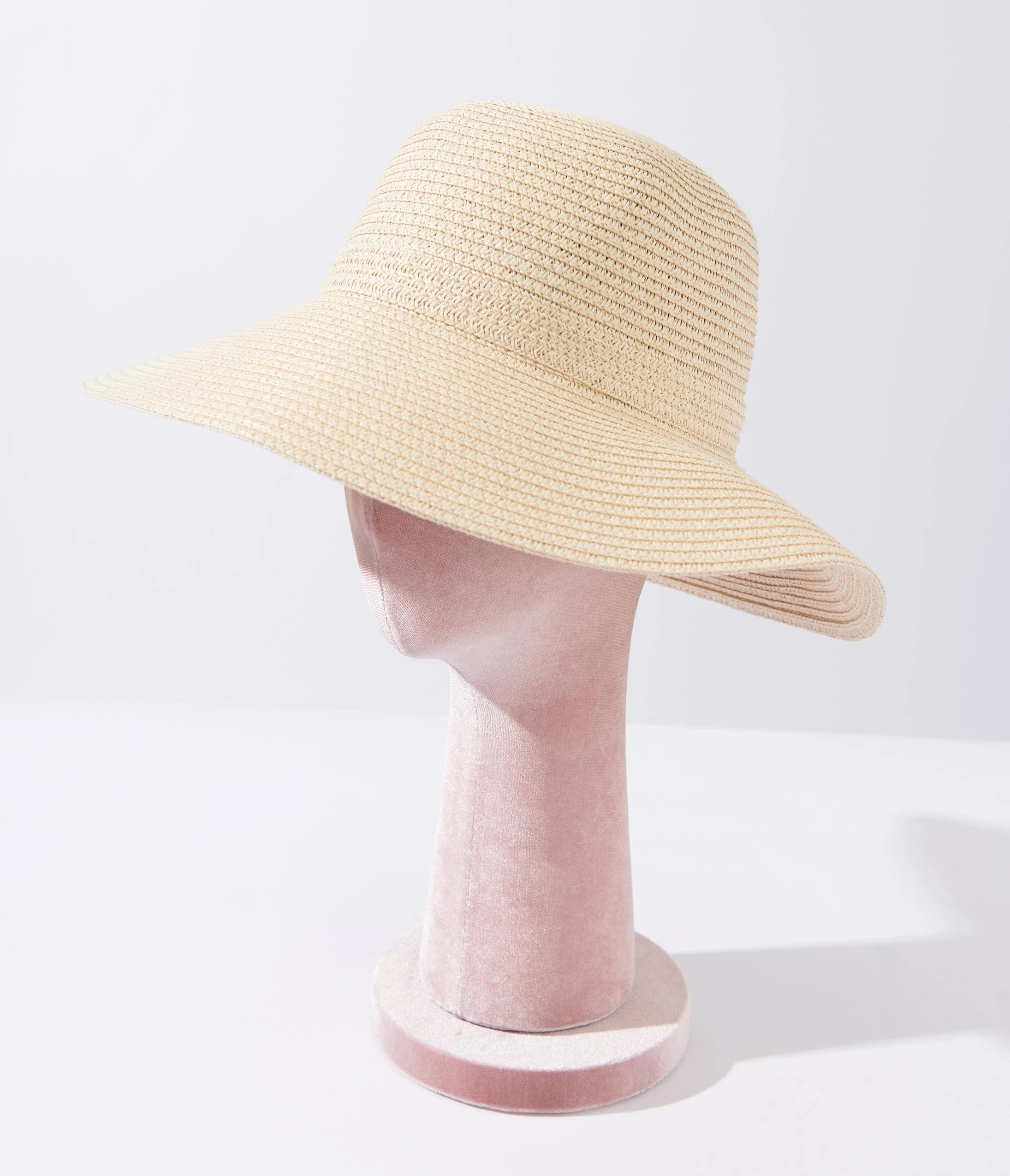 Beige paper braid bucket hat with folded ribbon detail. Complete with adjustable ties inside the crown that ensures a perfect fit.