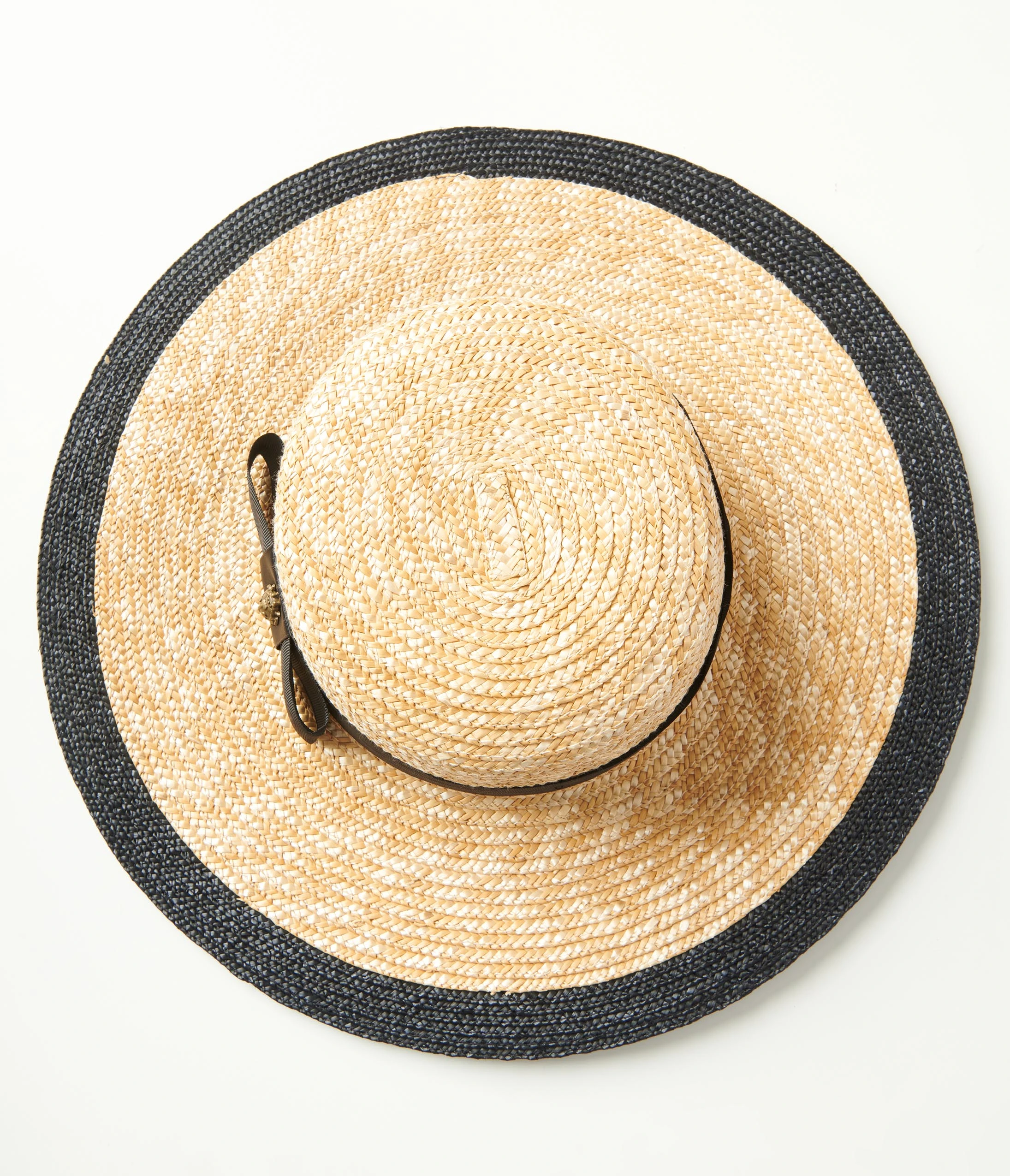 This cozy sun hat is crafted in a lovely tan straw and features a black faux ribbon on the hat band and brim. Complete with a charming bronze ladybug detail and adjustable ties inside the crown that ensures a perfect fit.