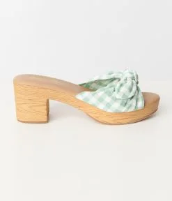 Be the first to review “Joia Mint Green Gingham Print Bow Wood Mule” Cancel reply