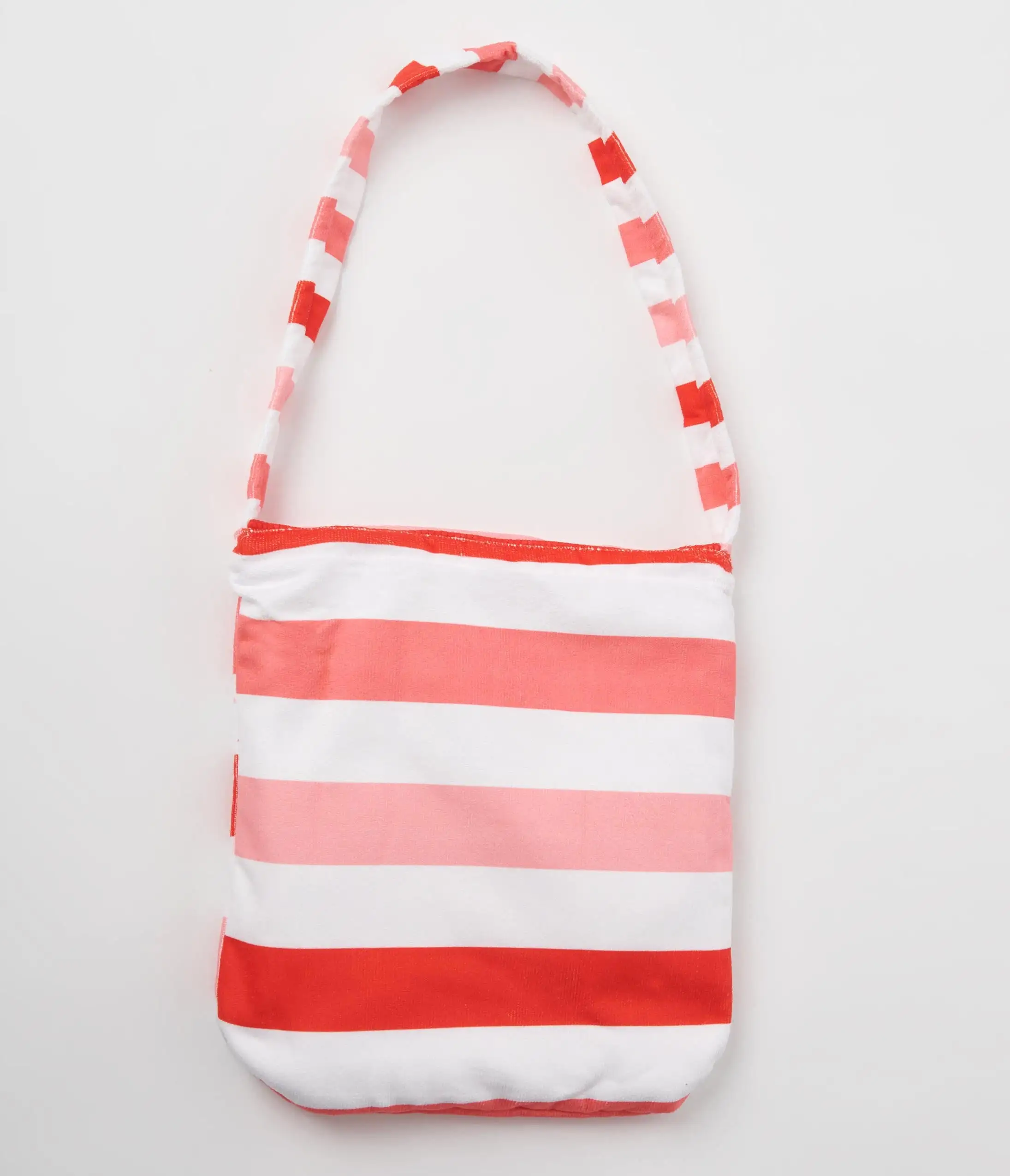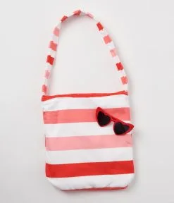 Always be prepared for the beach or any aquatics with this convenient 2-in-1 towel tote bag! Featuring a snazzy red, pink, and white stripe design.