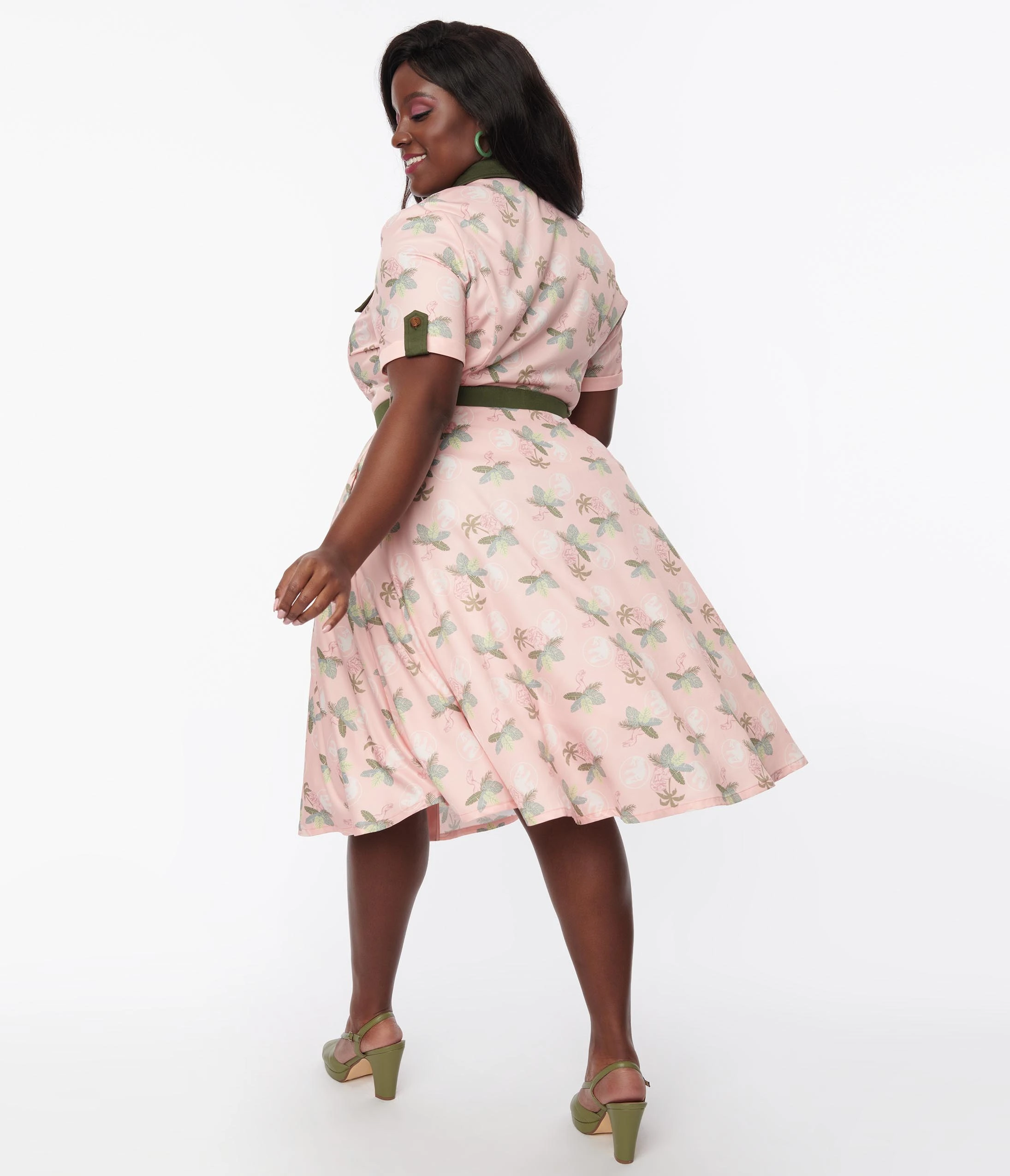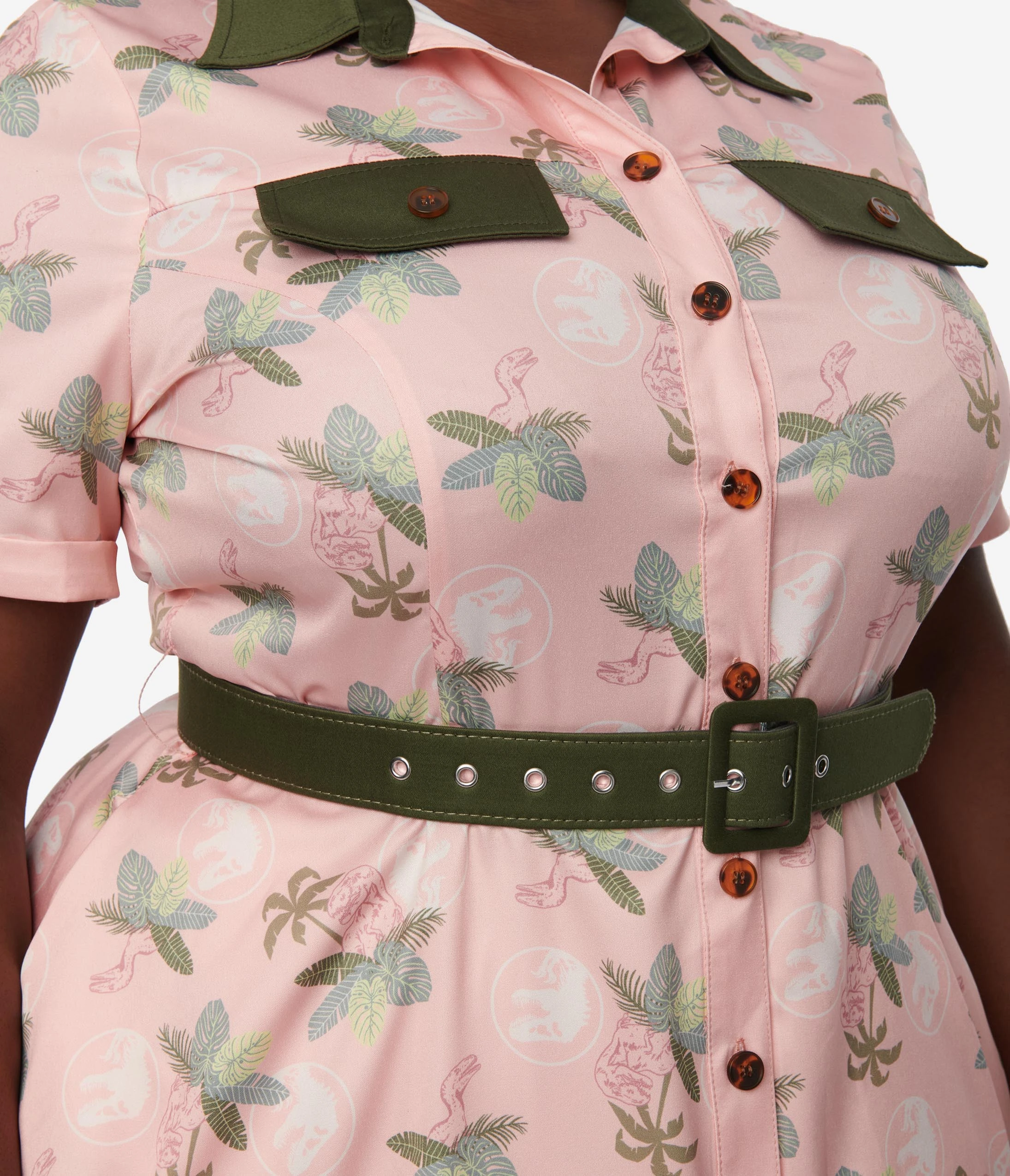 Be the first to review “Jurassic Park X Unique Vintage Pink Dino Palm Print Shadia Swing Dress” Cancel reply