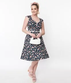 Be the first to review “LADY VINTAGE WHOLESALE Navy Ditsy Flower Isabella Swing Dress” Cancel reply