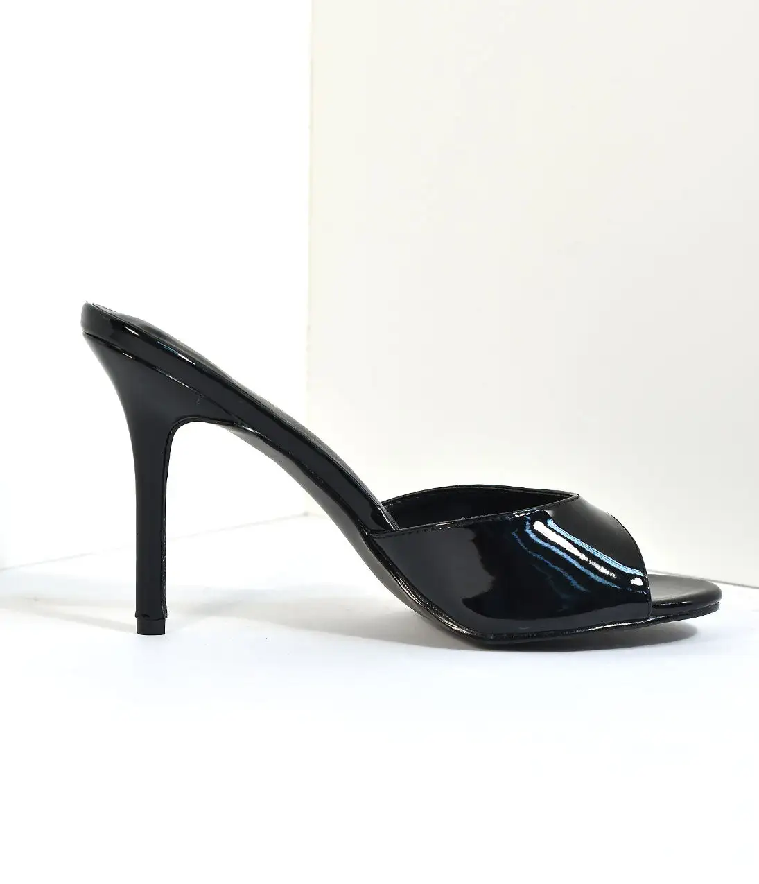 Step into a classic pair of black pumps! A vintage style of black slip ons with a peep toe touch is crafted in a flattering glossy leatherette and a comfortable heel for any of your day to night looks. A cushioned insole prepares you for the perfect comfort you can rely on, and a simple silhouette will make these your go-to pair!