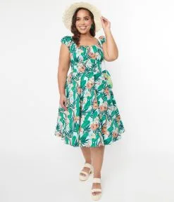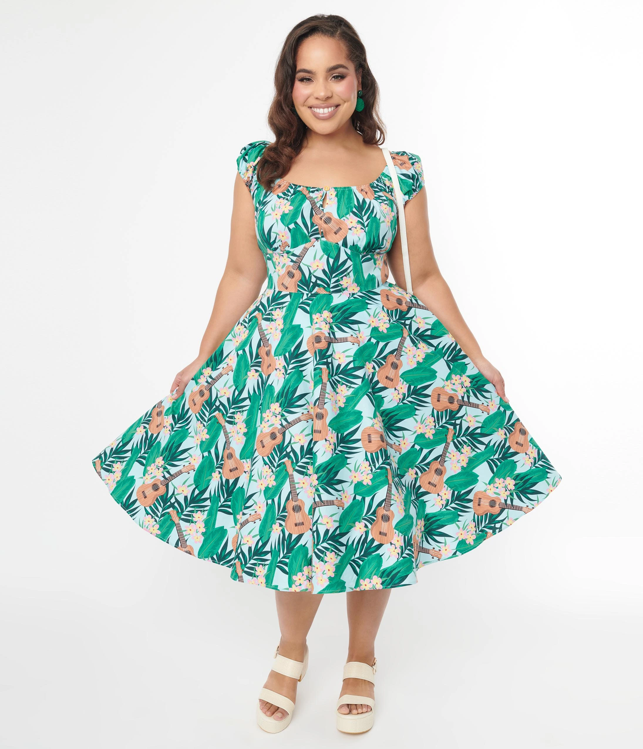 Be the first to review “Pop Soda Hell Bunny Light Blue & Green Tropical Ukulele Swing Dress” Cancel reply