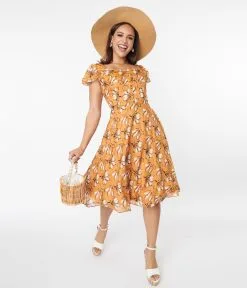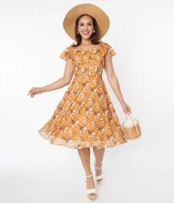 Be the first to review “Silver Stop Inc. (Voodoo Vixen) Voodoo Vixen Mustard & White Floral Swing Dress” Cancel reply