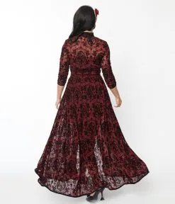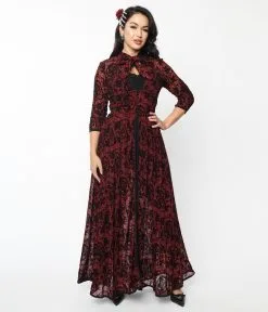 Be the first to review “Unique Vintage 1950s Burgundy & Black La Catrina Velvet Burnout Tallullah Duster” Cancel reply