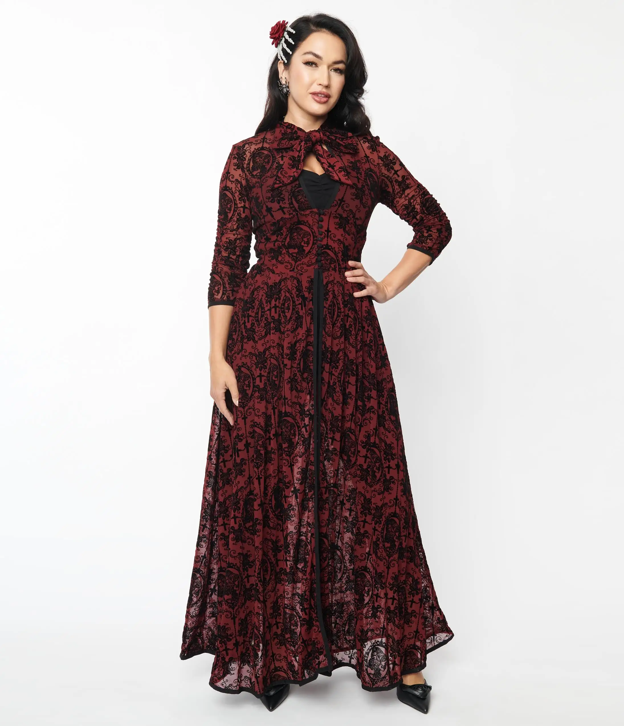 SKU: 6746916946022 Category: Midi & Maxi Tags: 1950s, 30% Off All Tops, Clothing, DARLINGS40OFF, Dresses, EOYSALE50, FEB25PRES, FRIENDS40, Gothic Glam, HLDYFP, MAR30OFFSITE, Midi and Maxi, The Creepy Collection, Three Quarter Sleeve, Tops, Unique Vintage, UV Brand, UV Clothing, Velvet, Velvet Dresses