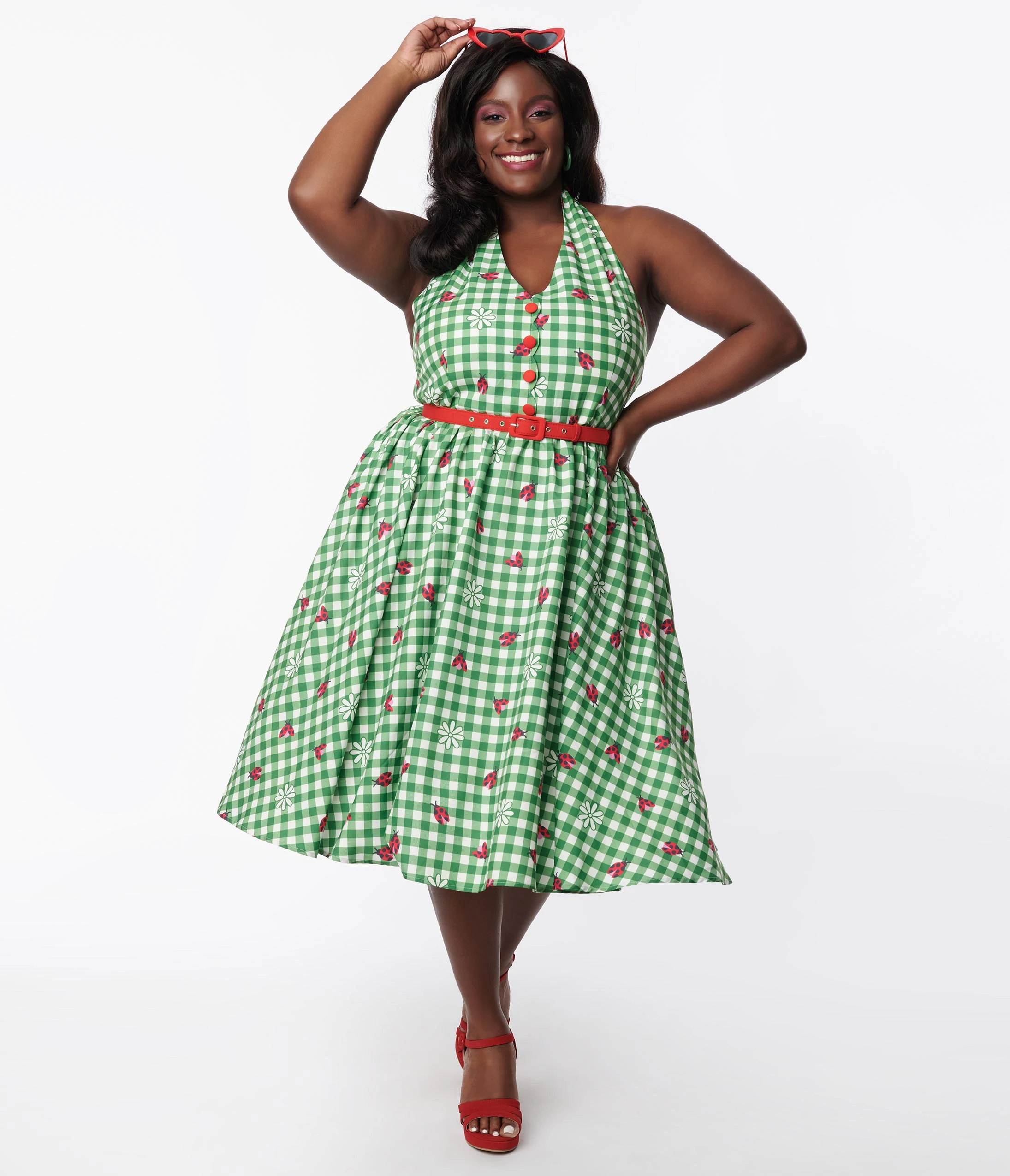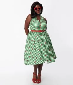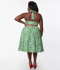 Be the first to review “Unique Vintage 1950s Green Gingham Ladybug Halter Swing Dress” Cancel reply