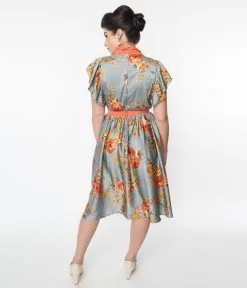 Be the first to review “Unique Vintage Antique Blue & Orange Floral Satin Swing Dress” Cancel reply